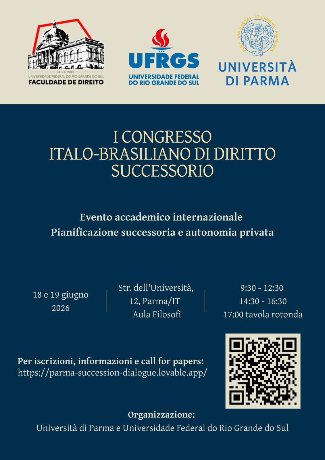 Il congresso nasce dalla collaborazione tra l’Università di Parma e la Universidade Federal do Rio Grande do Sul (UFRGS) e si propone come un importante momento di dialogo scientifico tra studiosi italiani e brasiliani sui più attuali sviluppi del diritto successorio.
